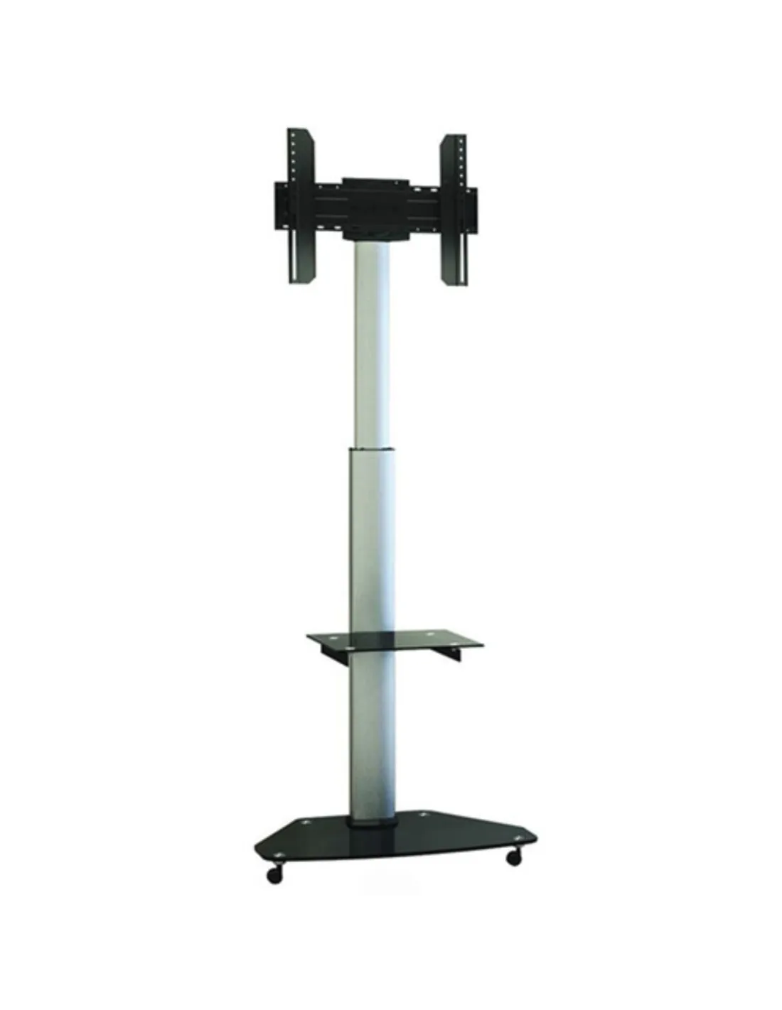 Ce support mobile pour écran plat en alu avec socle et tablette verre présente un design élégant. La hauteur de la platine peut être réglée de 120 à 180cm. Elle supporte tous les écrans en VESA max. 600x400, et permet l'orientation portrait / paysage. La tablette aussi peut être réglée en hauteur. La gestion des câbles est prévue.